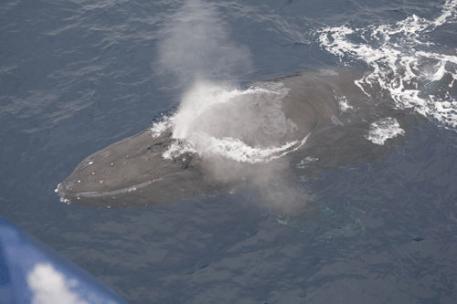 As soon as the ship weighed anchor some distant whale spouts were spotted. Getting closer we could see that there were two species – Antarctic Minke, a sleek baleen whale up to 30’in length and Humpback Whale, large-flippered, rotund and up to 45’ in length. Both species gave excellent views and both were present in some numbers. There were perhaps 15-20 minkes and maybe 10 humpies. It was the latter that we got very close to. For a long time, as we approached, they were lifting their tail flukes high in the air when making a dive. However, when we got closer they changed their behaviour and were only making shallow dives. The reason could be seen on the depth sounder – a huge swarm of krill just below the ship. Two whales peeled away but the other two, perhaps a female and a large calf, stayed with us for a long time. Mostly they were diving to feed but their curiosity got the better of them so they swam around the ship several times – righ t below us! From above we got fantastic views of them and the sound of them exhaling was unforgettable. Eventually they moved away so we did too, towards the north and yet more adventures.