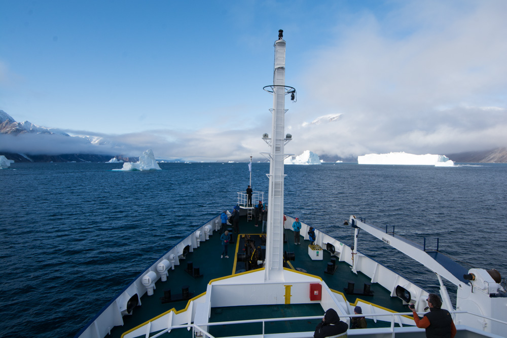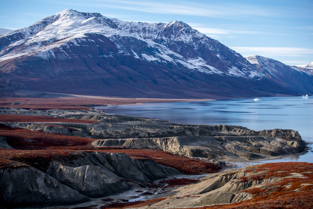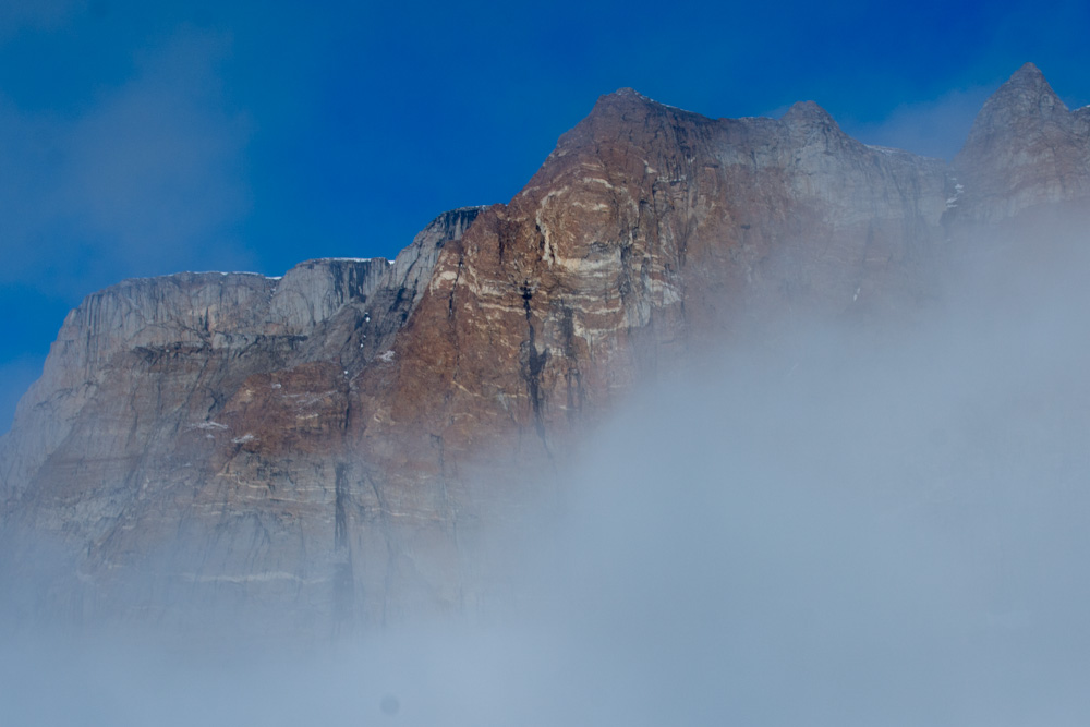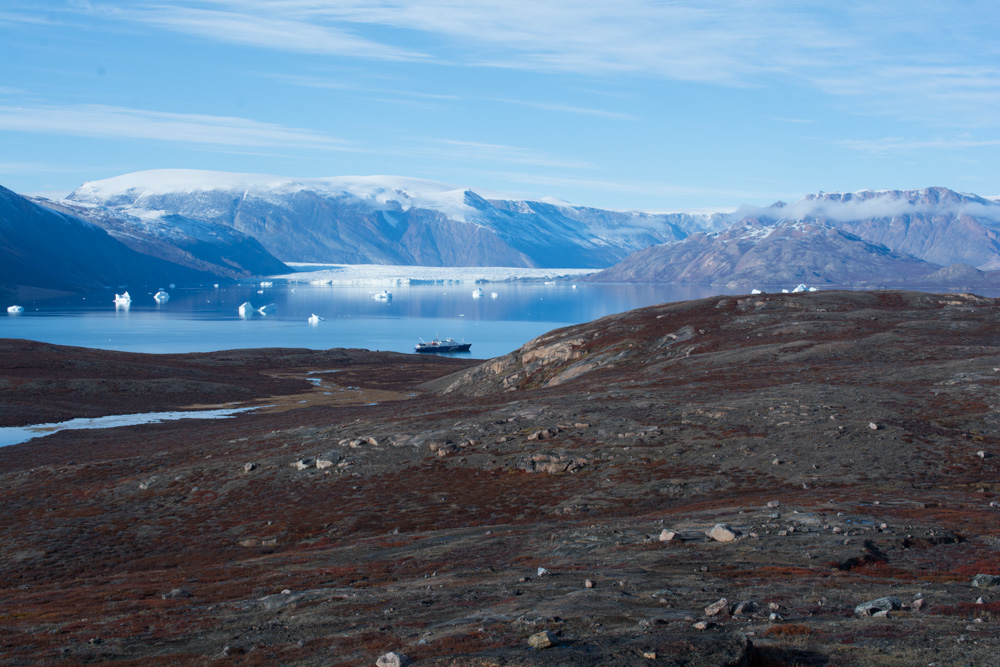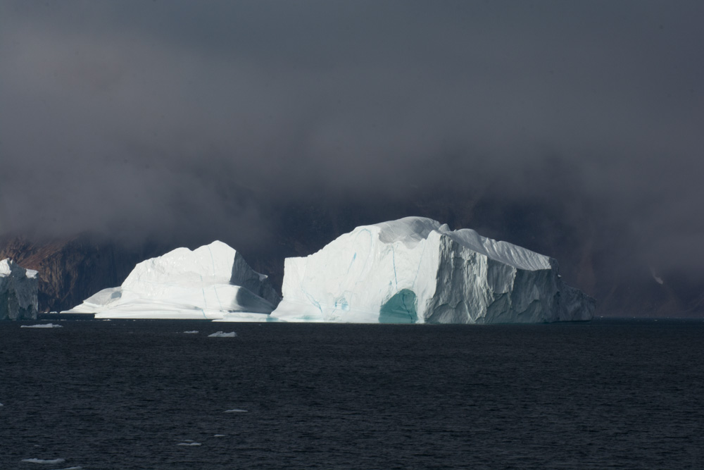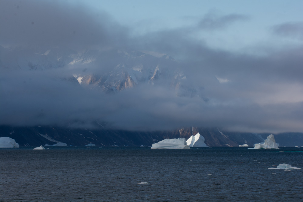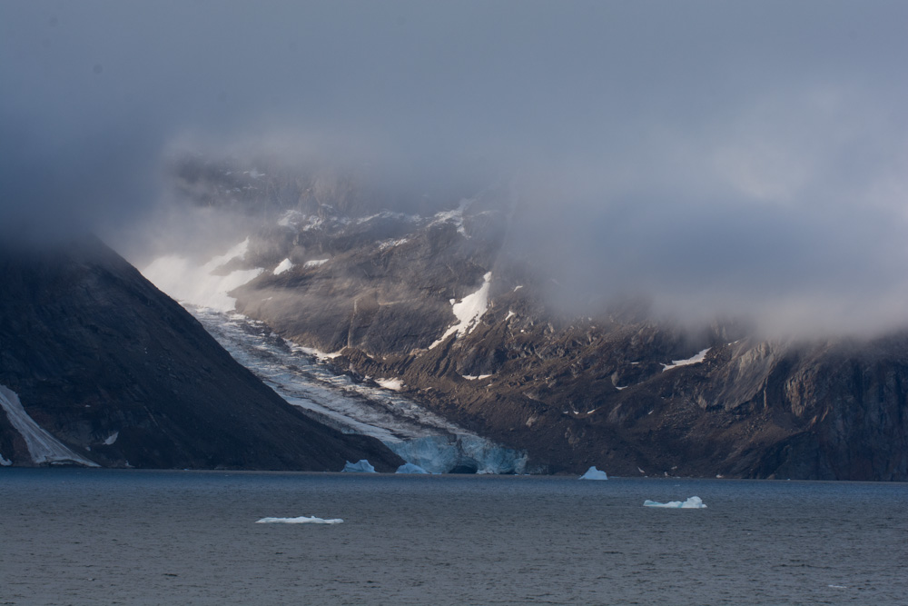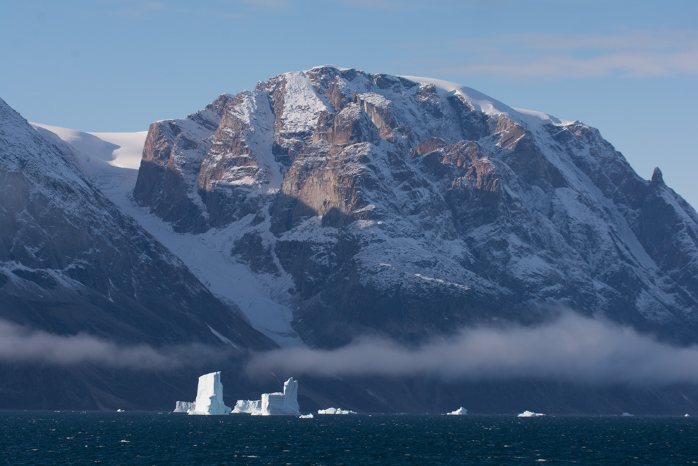 Øford is an amazing fjord packed with icebergs that cuts through 1 billion year old gneiss that has red bands of garnet crystals and is in places completely remelted into Augen granite.
