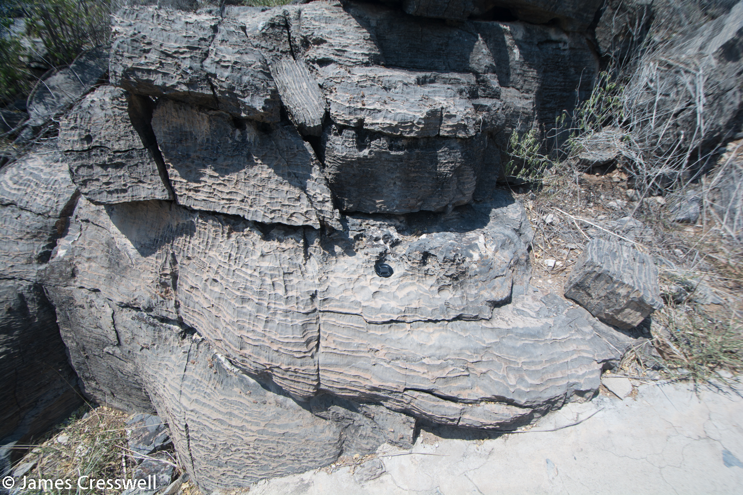 The whole day was spent crossing Etosha National Park, from east to west, and offered an opportunity to view a multitude of fantastic wildlife. There was one brief geological stop, however, to view stromatolites at one of the lodges in the park.