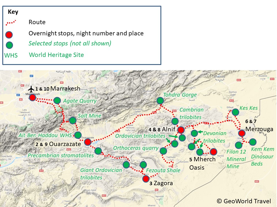 GeoWorld Travel’s ‘Morocco: The Trilobite’s Sahara Kingdom’ route map