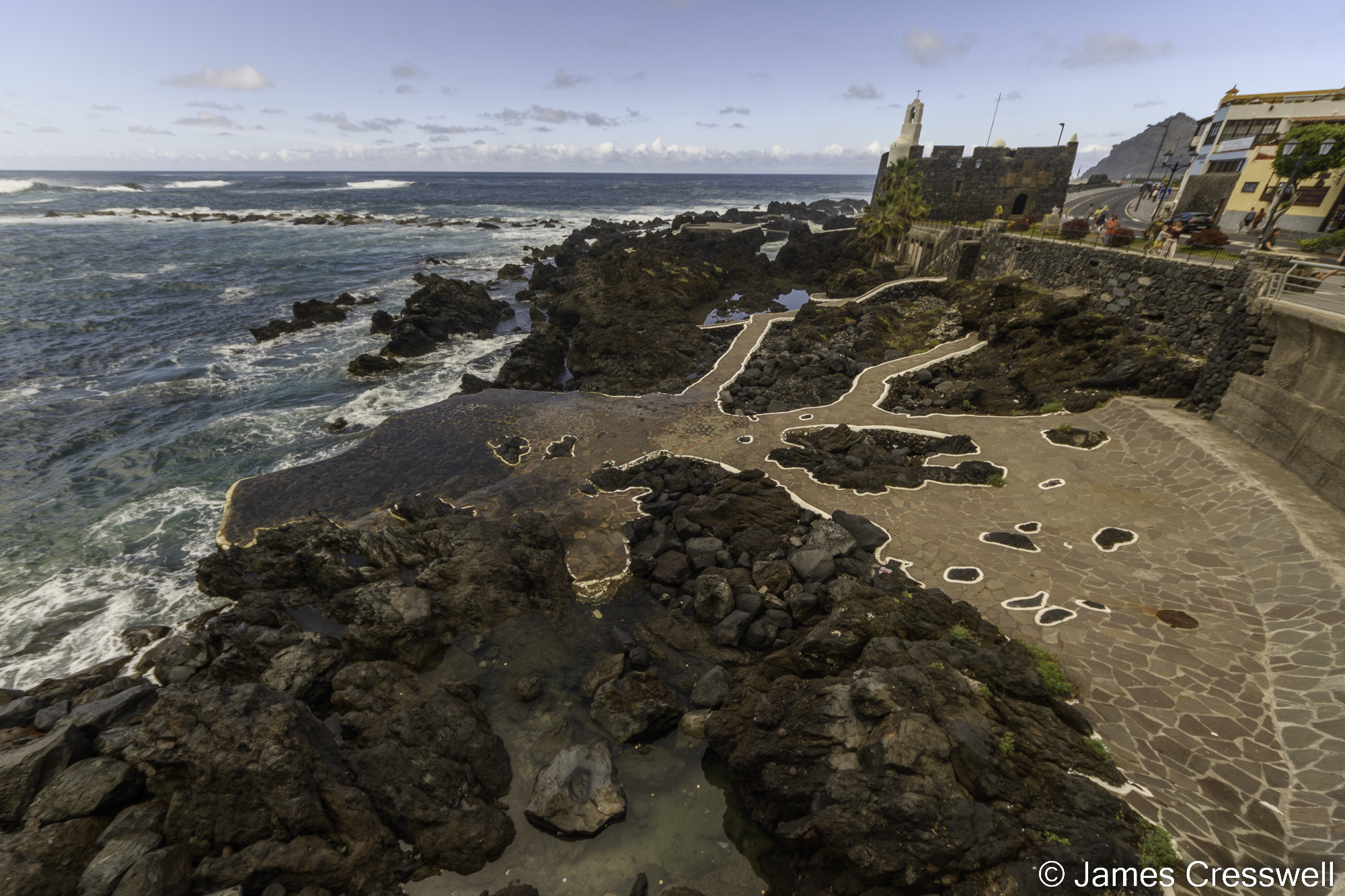A lava flow that was emitted from an eruption on the flanks of Mt Teide in 1706. When the lava flow reached the coast, it blocked the port of Garachico which was, at that time, was the capital of Tenerife and a major port linking Spain to the Americas. The fort in the back ground marked the entrance to the port.