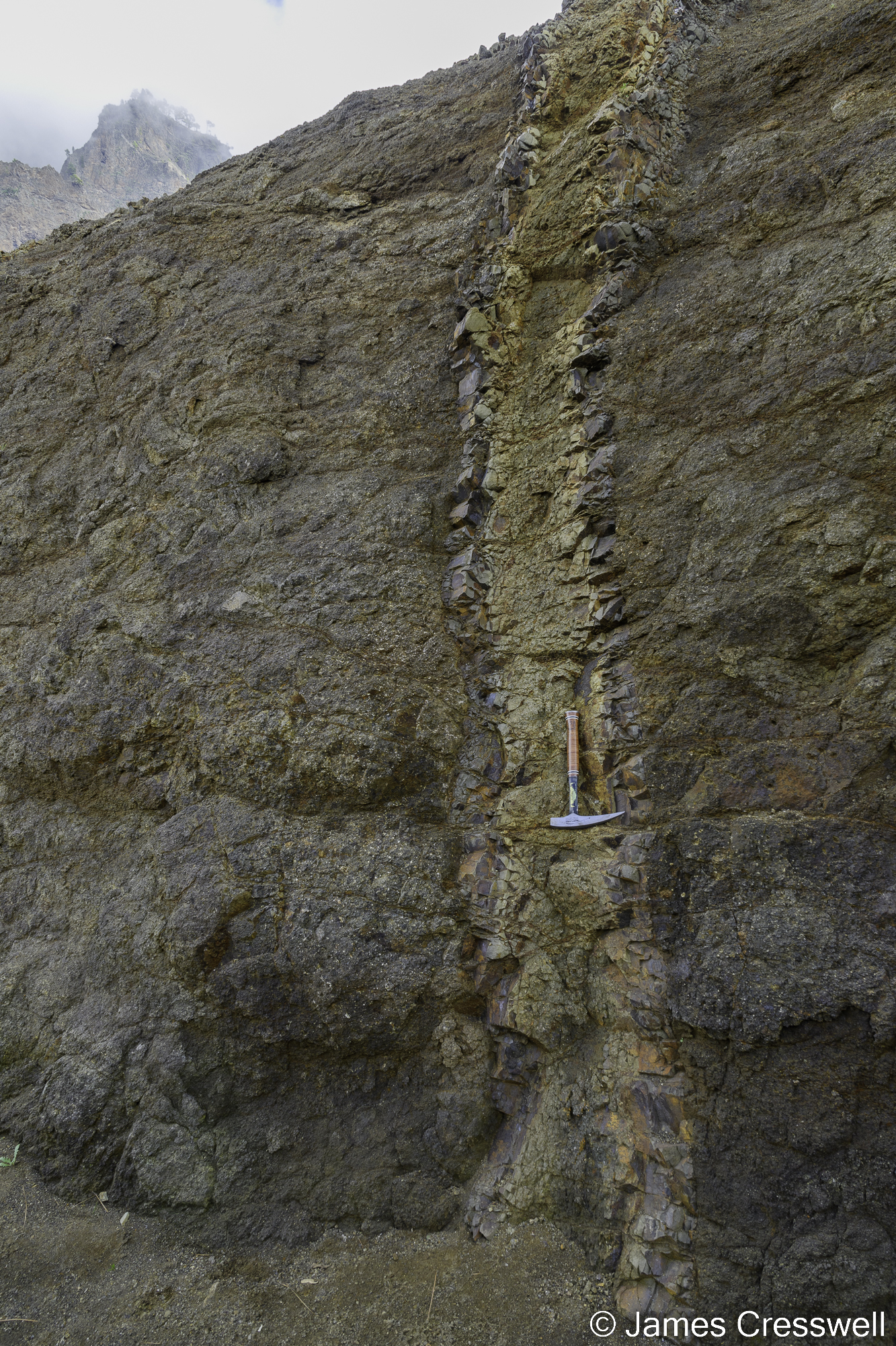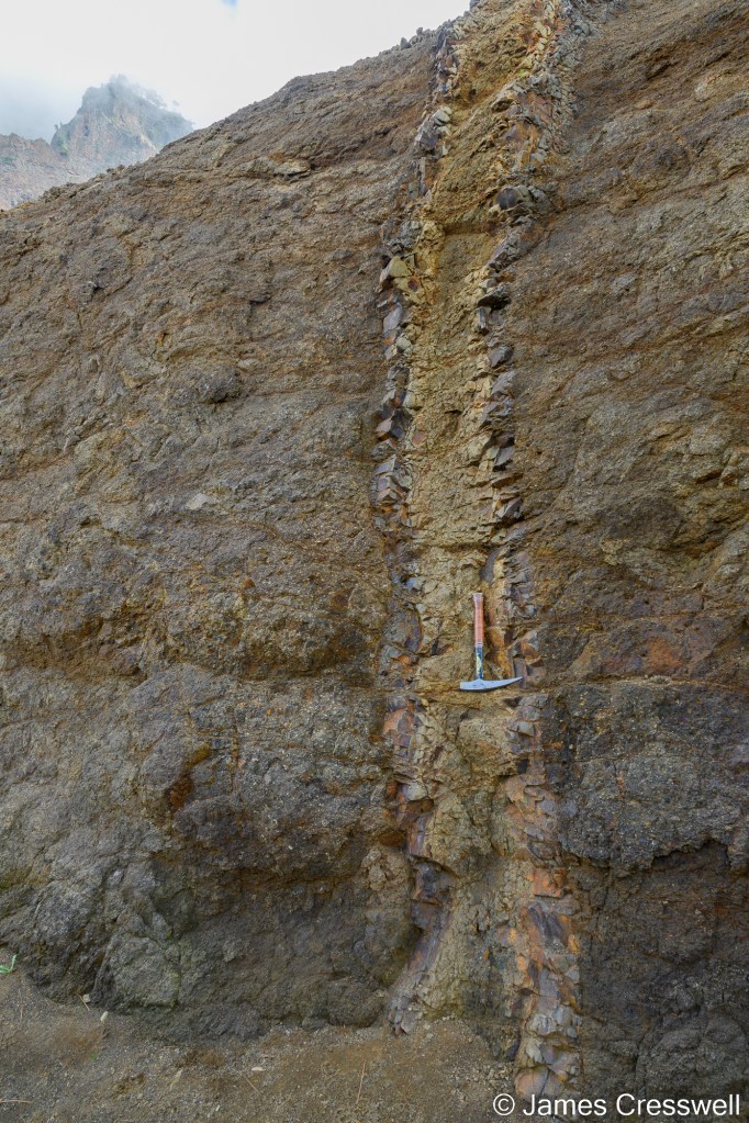Above, from L-R: A dyke with a beautiful chilled margin that cuts the Bejenado volcano.