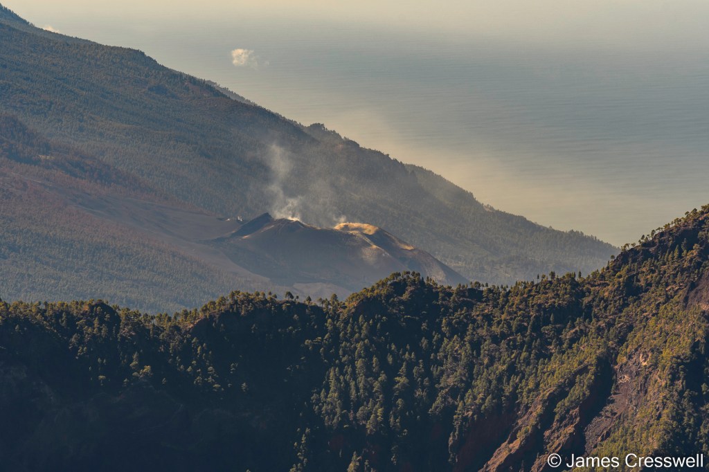 The new Tajogaite cone that formed in the 2021 Cumbre Vieja eruption viewed from Tajuya Church, the same place where the world’s media filmed the eruption as it occurred.
