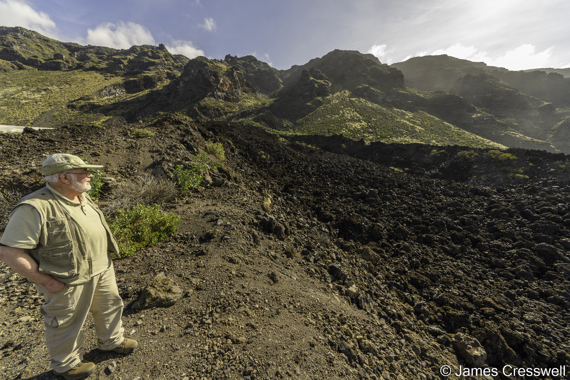 Above, from L-R: Allen stands on a large levee at the edge of the 1712 lava flow.