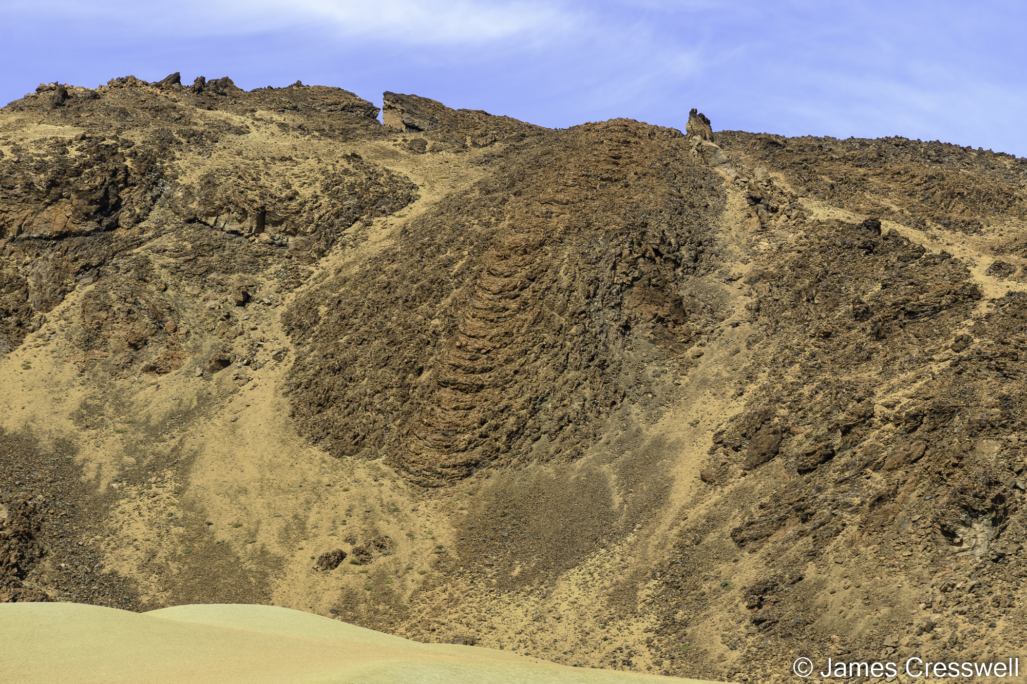 A phonolite flow arresting on a steep slope demonstrating just how viscous it was.
