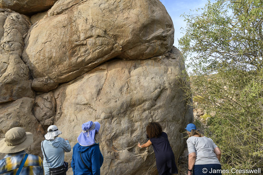 Above left: Members of the GeoWorld Travel group examines ancient rock art.