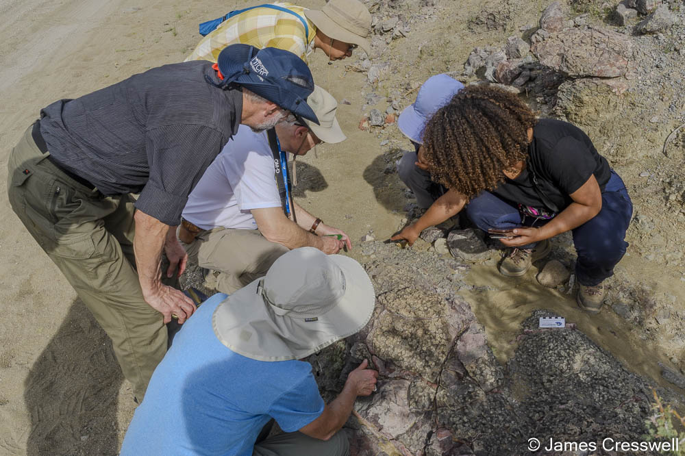 Bottom right: The GeoWorld Travel group examines an outcrop of pillow lavas that are made up from the rare type of lava, boninite. Boninites are andesites rich in magnesium and titanium they nearly always only form over subduction zones, giving important information as to how Oman’s ophiolite formed.