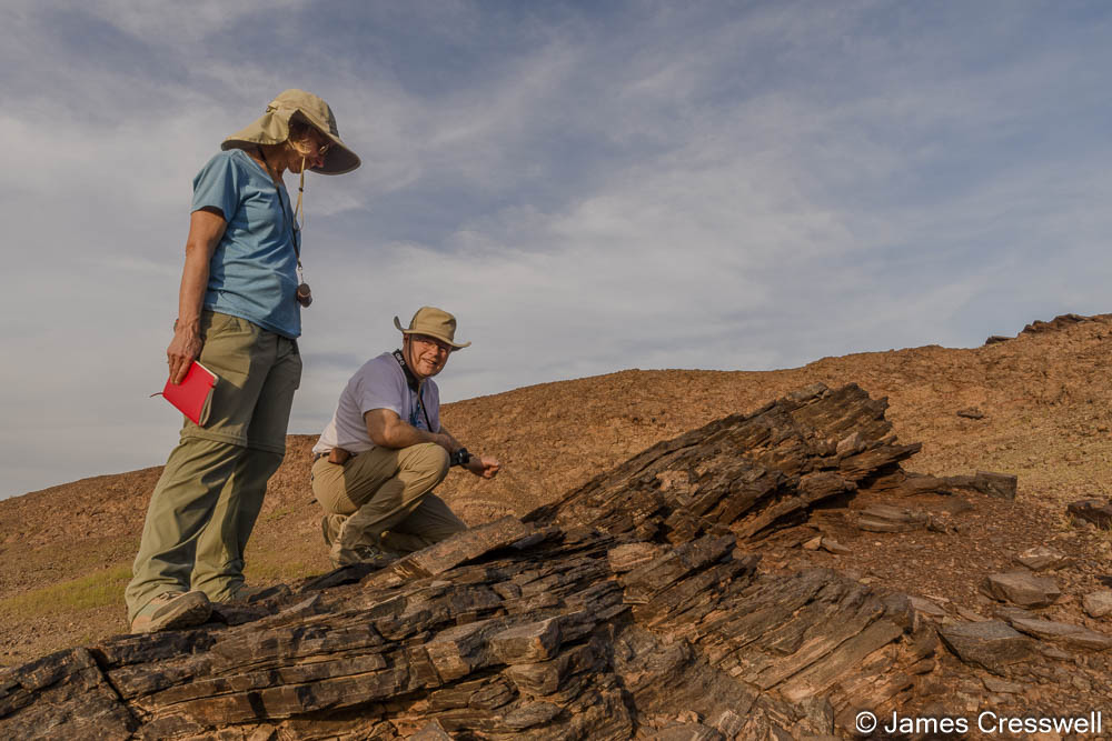 Above left: The GeoWorld Travel group examines the Ruwi melange. The rock here was taken 30kmj down a subduction zone and shows shear bands that formed when it was forcing its way back to the surface after the subducting slab broke off.