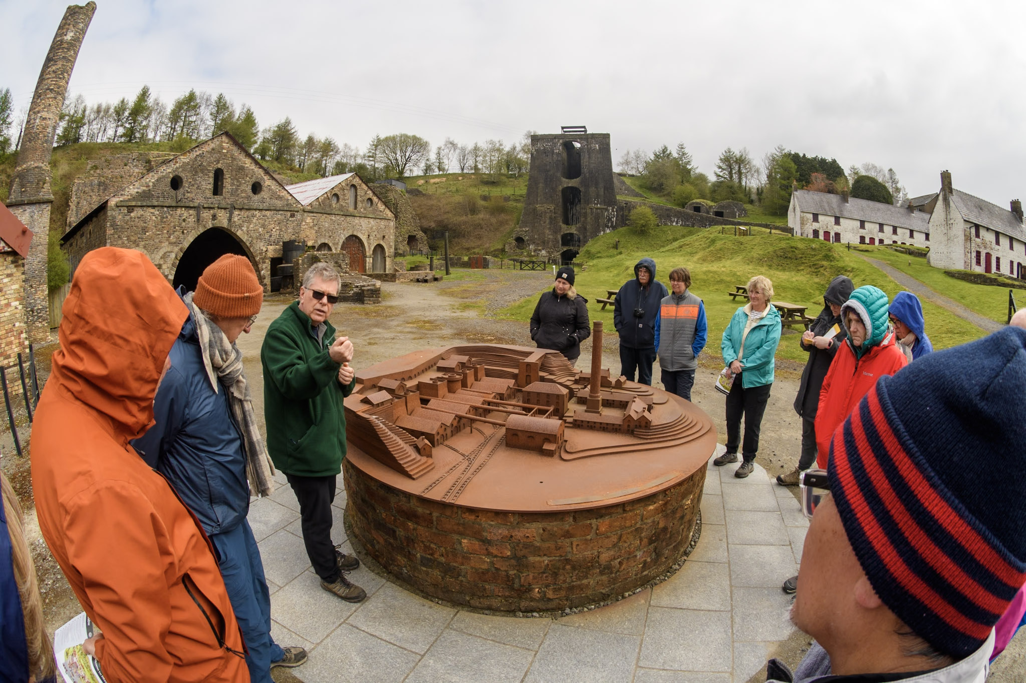Above left: The GeoWorld Travel group at Blaenavon Ironworks, in the Blaenavon Industrial Landscape World Heritage Site. The ironworks is located here due to the local geology, as iron ore, limestone and coal, all essential ingredients in the iron making process, outcrop in the area.