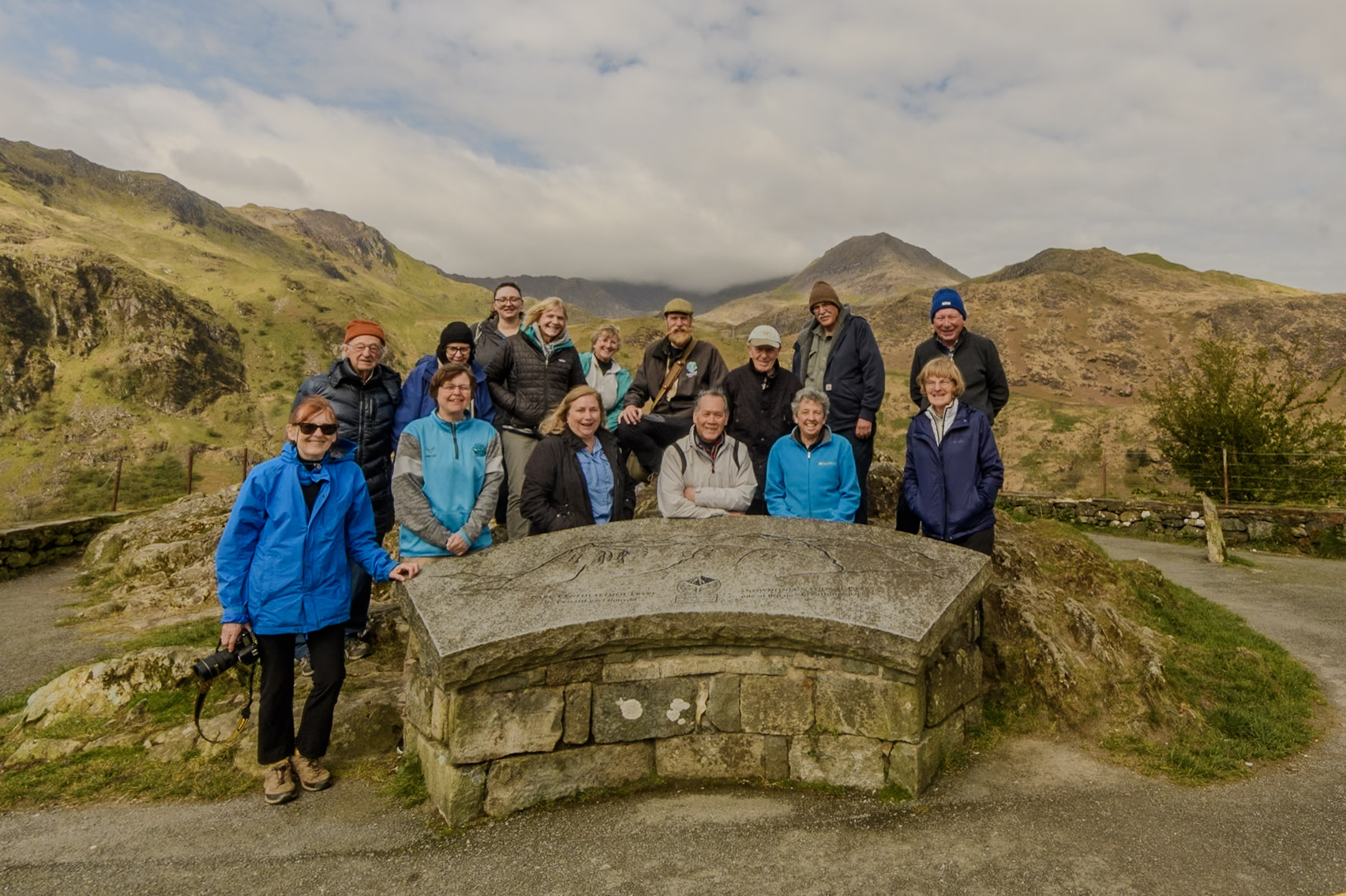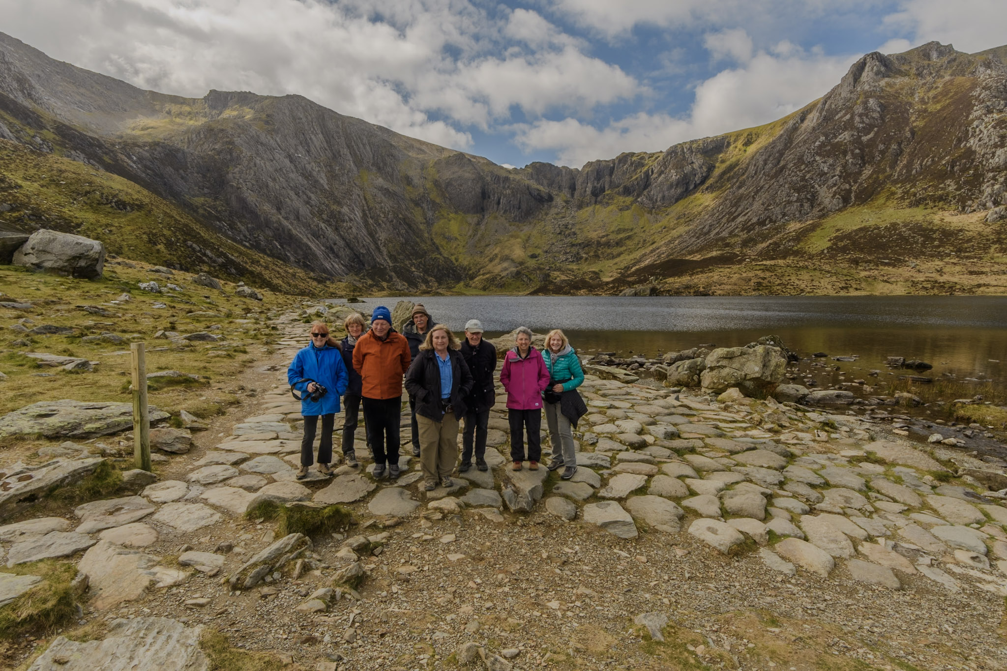 Above top right: The group in Eryri National Park. The highest peak Yr Wyddfa (Snowdon) is in the centre background, but is obscured by cloud!