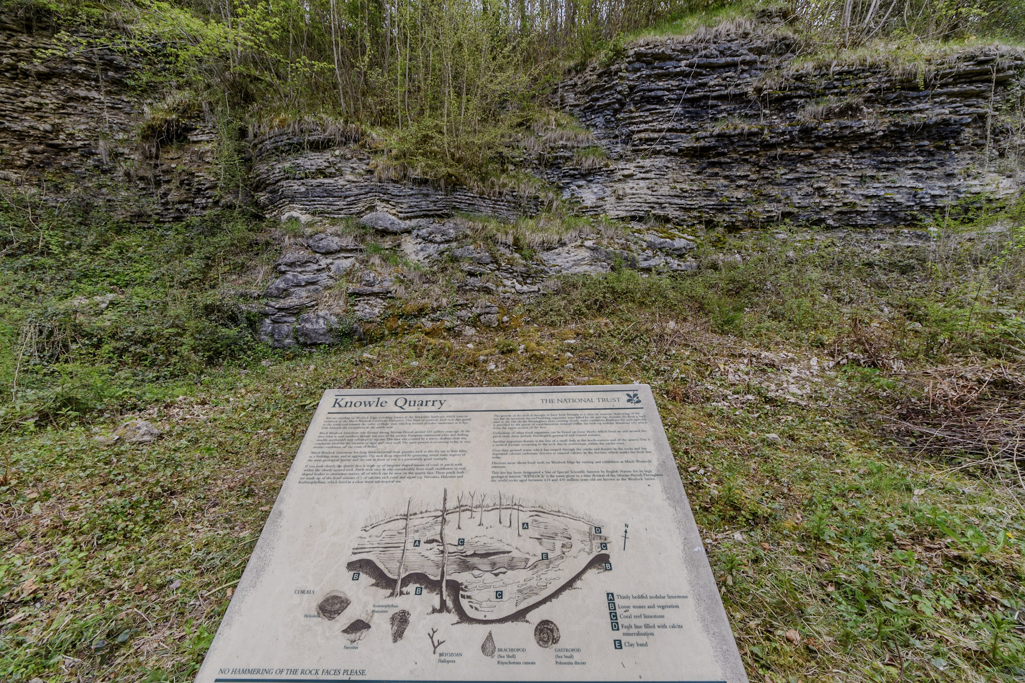 Above top right: Knowle Quarry on Wenlock Edge, the type area of the Wenlock epoch of the Silurian. The Wenlock Limestone Reef Facies consists of flat-bottomed lenticular masses of reef limestone (‘ballstone’) up to 80 ft (24 m) in thickness surrounded by bedded nodular limestone with siltstone beds.