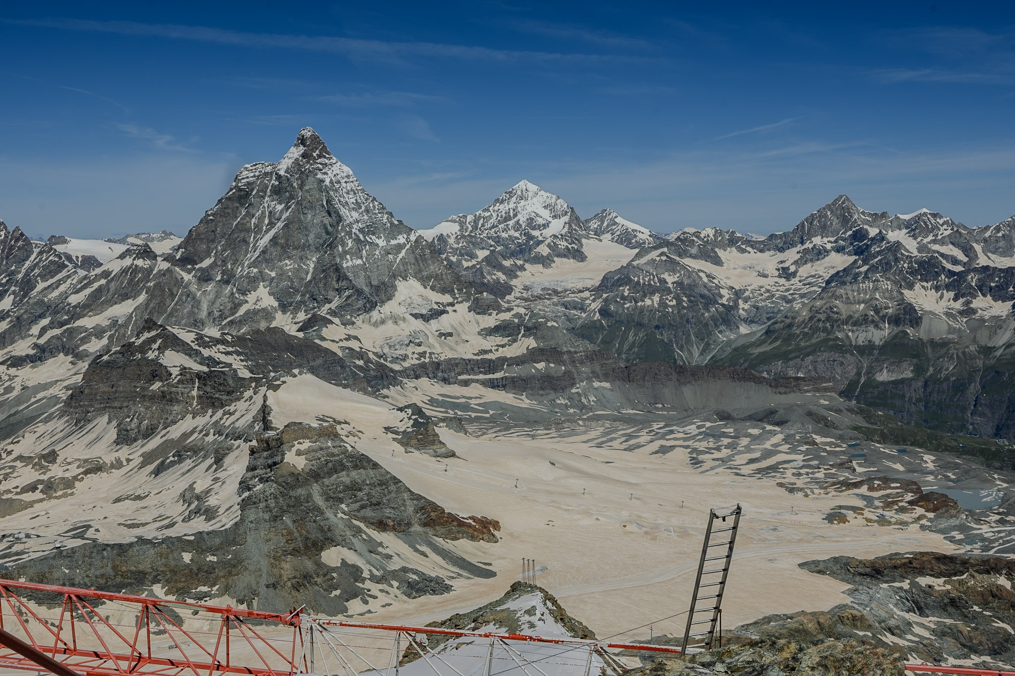 Clockwise from top left: The GeoWorld Travel group, with the Matterhorn in the background, on the Matterhorn Glacier Trail.