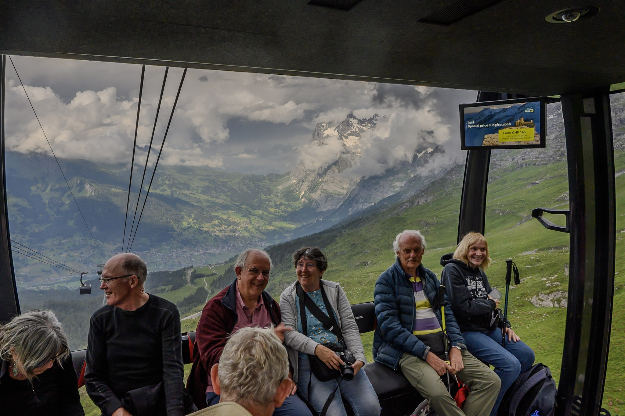 The group enjoying the descent from Jungfraujoch in the Eiger Express gondola!