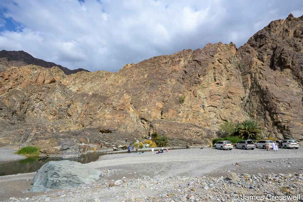 Left: The start of the hike into Wadi Shab. Wadi Shab is a canyon cut through Eocene aged limestone and is regarded by many as Oman’s most beautiful wadi.